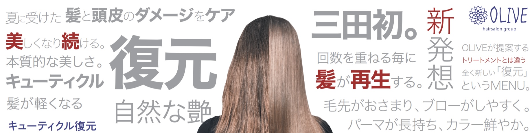 三田市で美容室を3店舗運営するOLIVEグループではこの夏、美しい髪を手に入れる新メニューを導入。